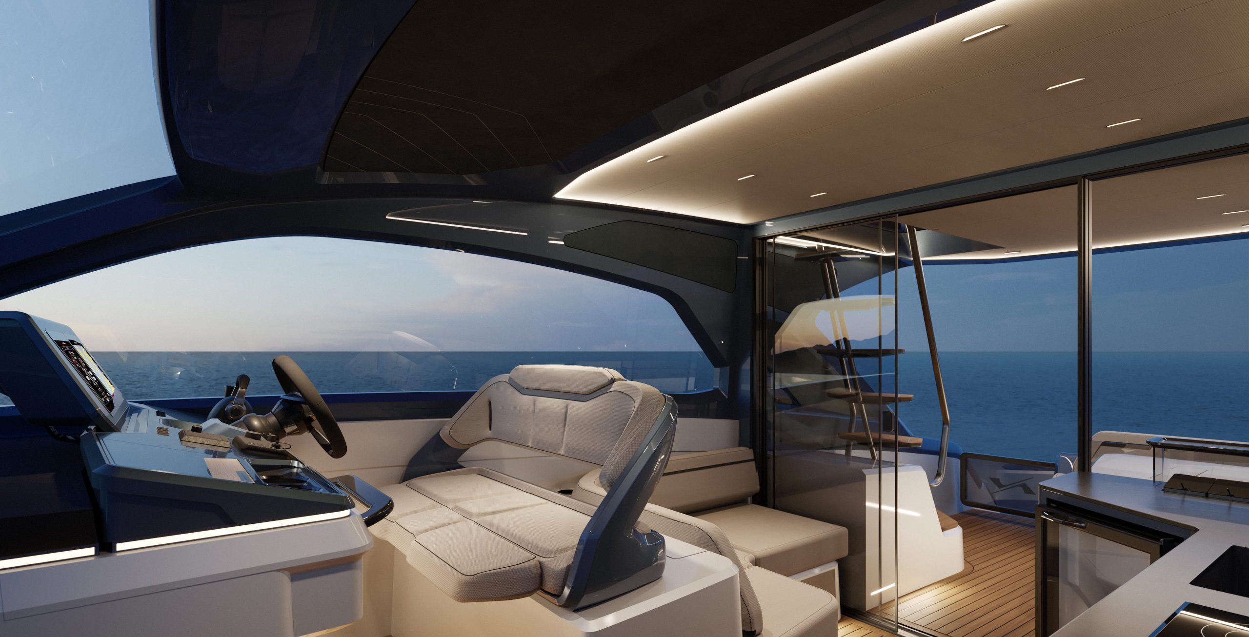 surpreende ao trazer um flybridge versátil e social, que amplia a experiência a
